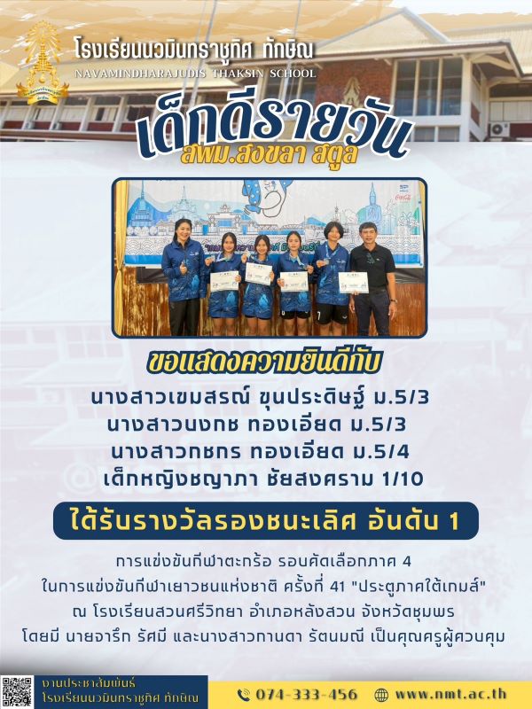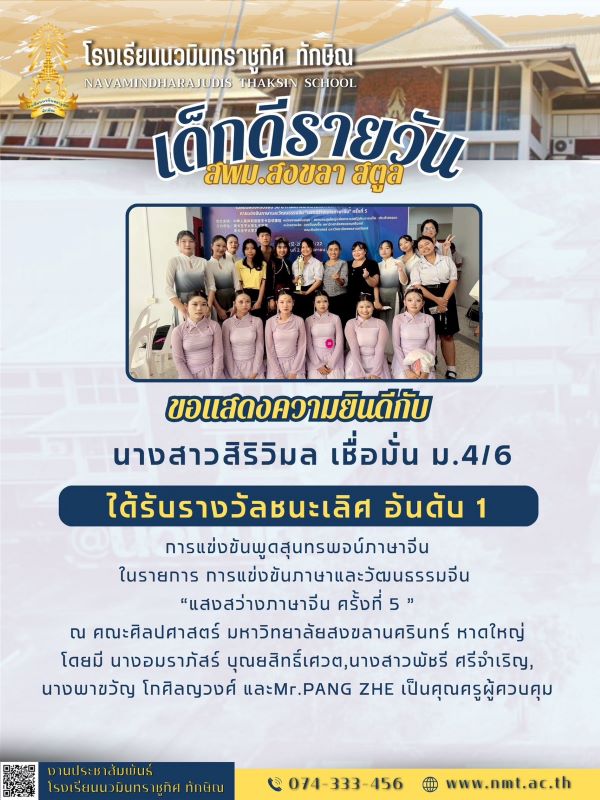 - ขอแสดงความยินดีกับรองผู้อำนวยการอัฐพงศ์ แก้วเจียรวนนท์ ได้รับรางวัลเชิดชูเกียรติในงานวันครู ครั้งที่ 70 |