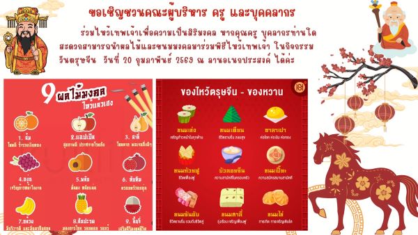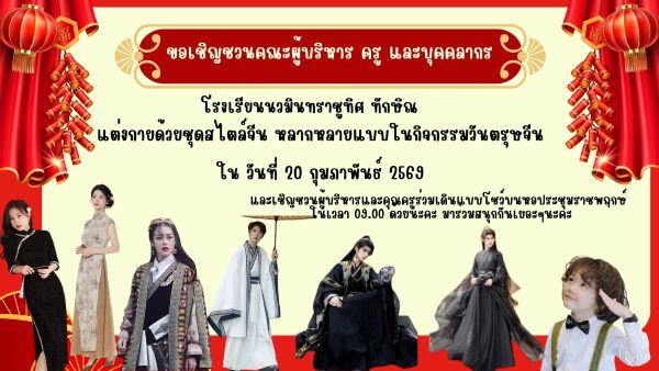ขอเชิญชวนคณะครู บุคลากรทางการศึกษา และนักเรียนทุกคนเข้าร่วมกิจกรรมวันตรุษจีน