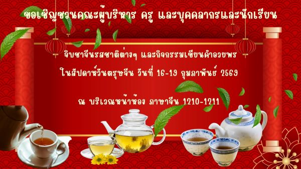 - ขอเชิญชวนคณะครู บุคลากรทางการศึกษา และนักเรียนทุกคนเข้าร่วมกิจกรรมวันตรุษจีน |