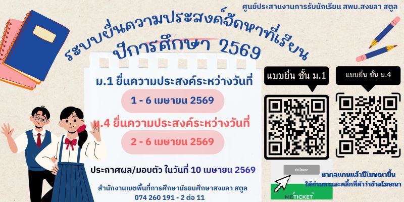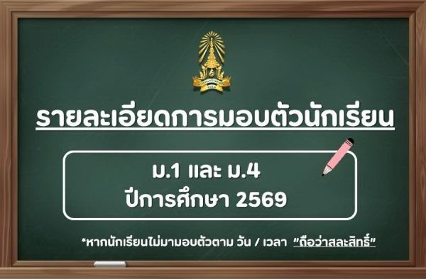 - รายละเอียดการมอบตัวนักเรียนชั้นมัธยมศึกษาปีที่ 1 และชั้นมัธยมศึกษาปีที่ 4 ปีการศึกษา 2569