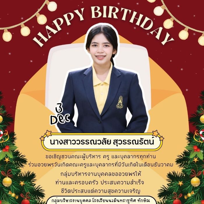 สุขสันต์วันเกิดบุคลากรทุกท่านที่เกิดในเดือน ธันวาคม พ.ศ. 2568