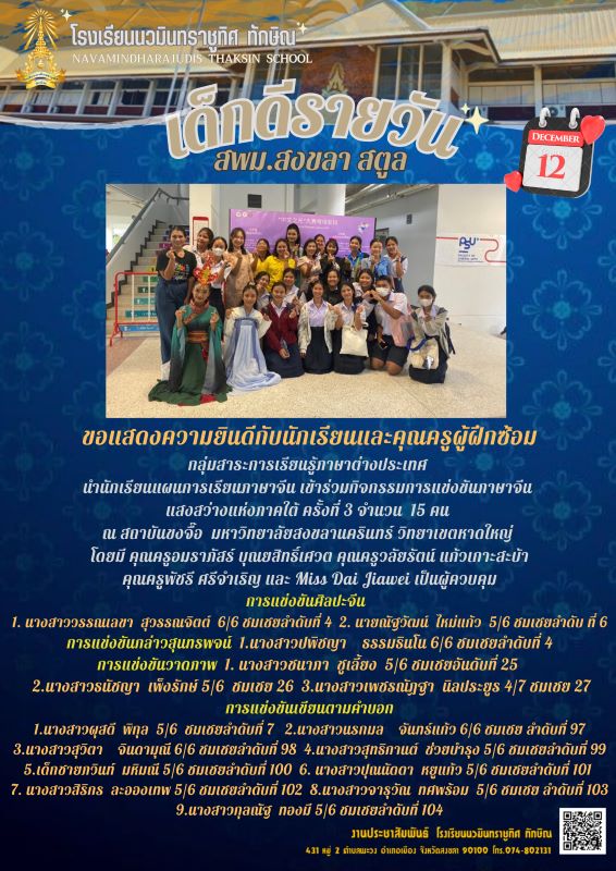 - กลุ่มสาระการเรียนรู้ภาษาต่างประเทศ จัดกิจกรรม Foreign Language Week ระหว่างวันที่ 9-12 มกราคม 2566 รายละเอียดเพิ่มเติม